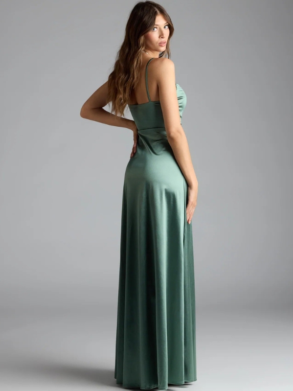 Be the first to review “Devorah Luxe Satin Cowl Neck Dress in Sage”
