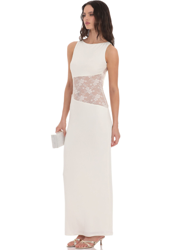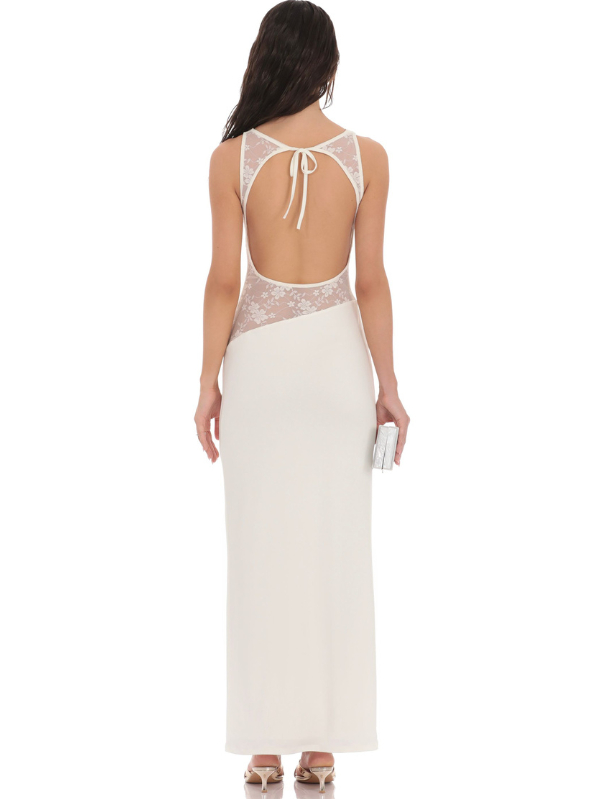 Be the first to review “Lace Cutout Open Back Dress in White”