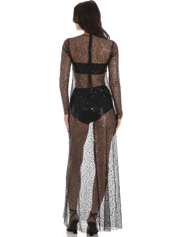Rhinestone Sequin Beaded Dress in Black